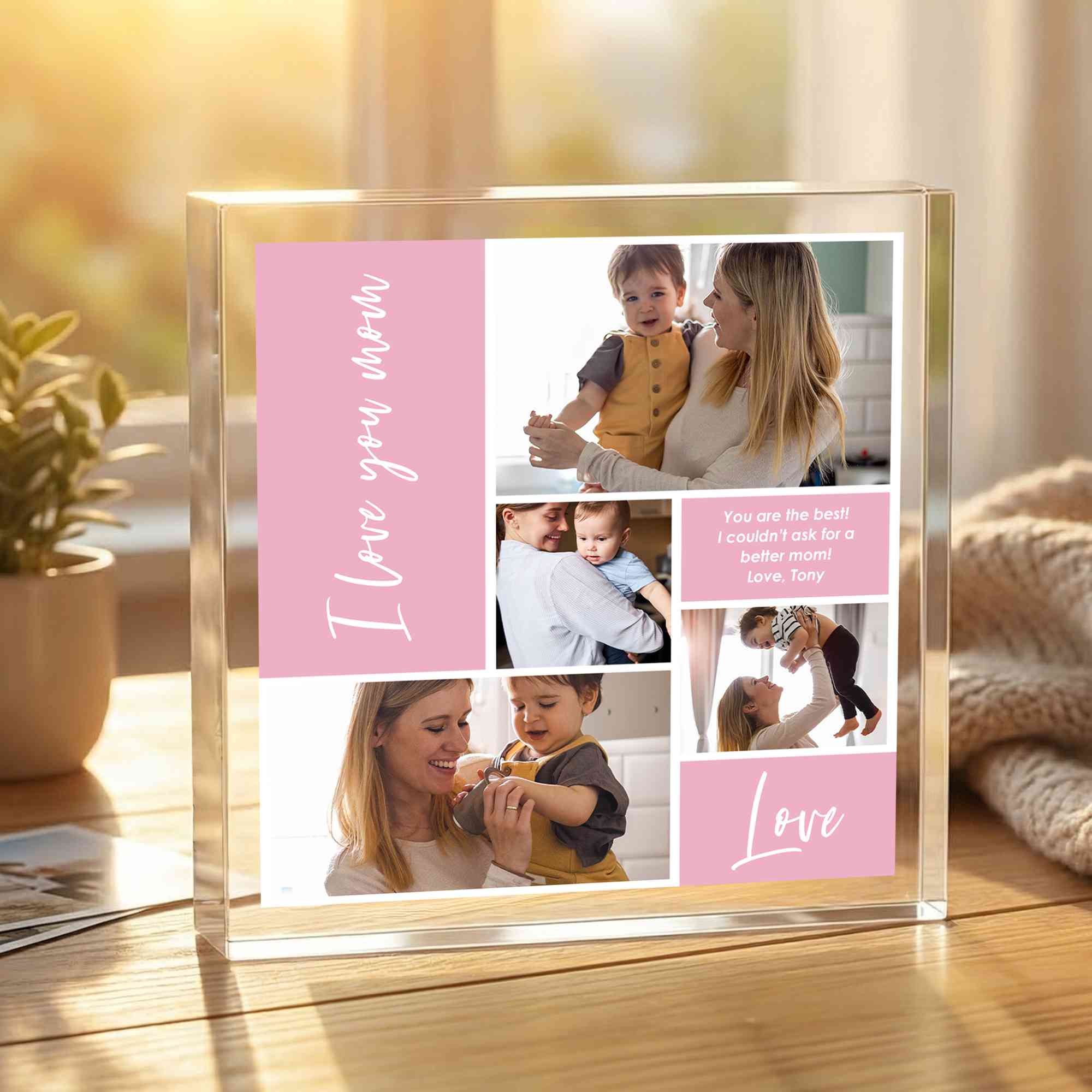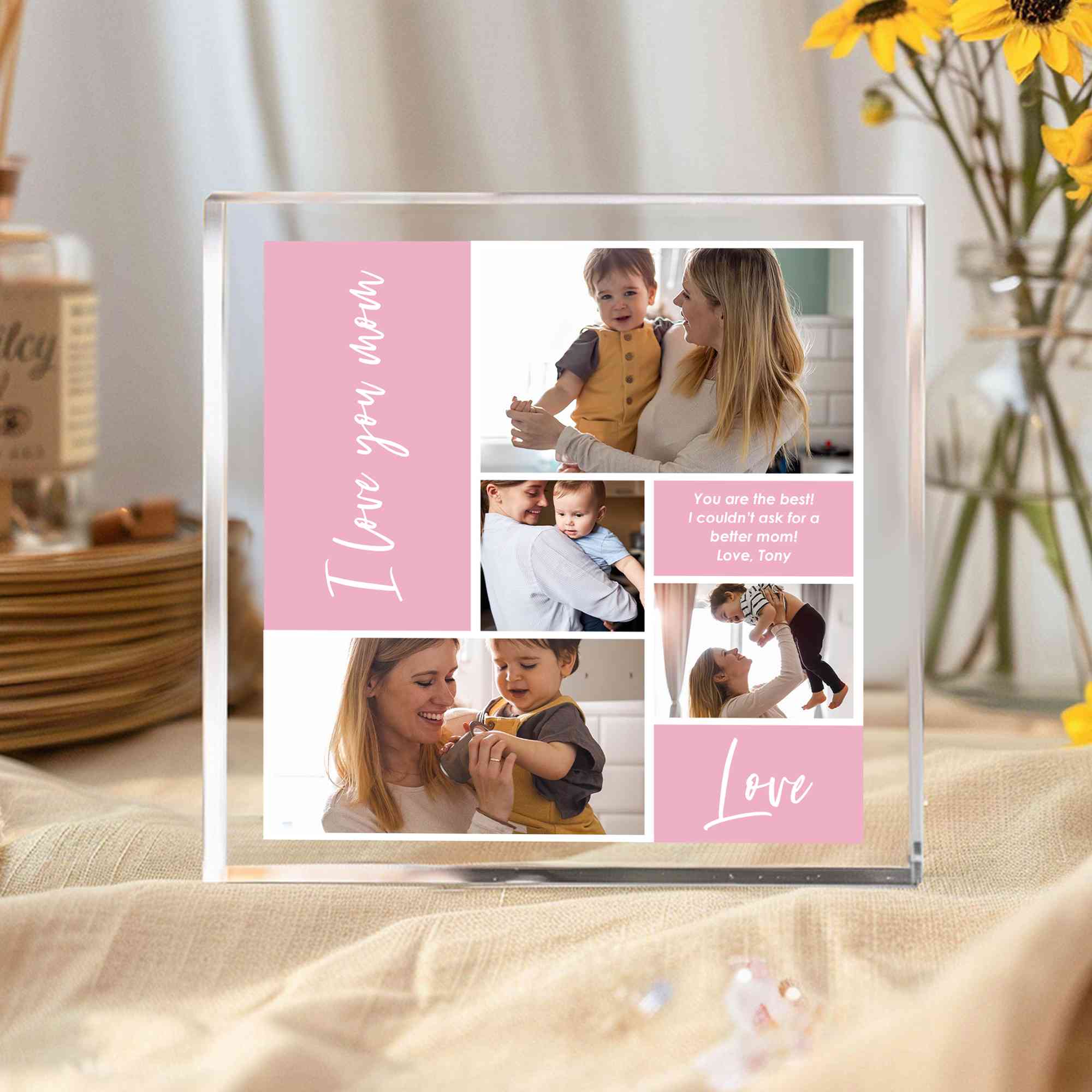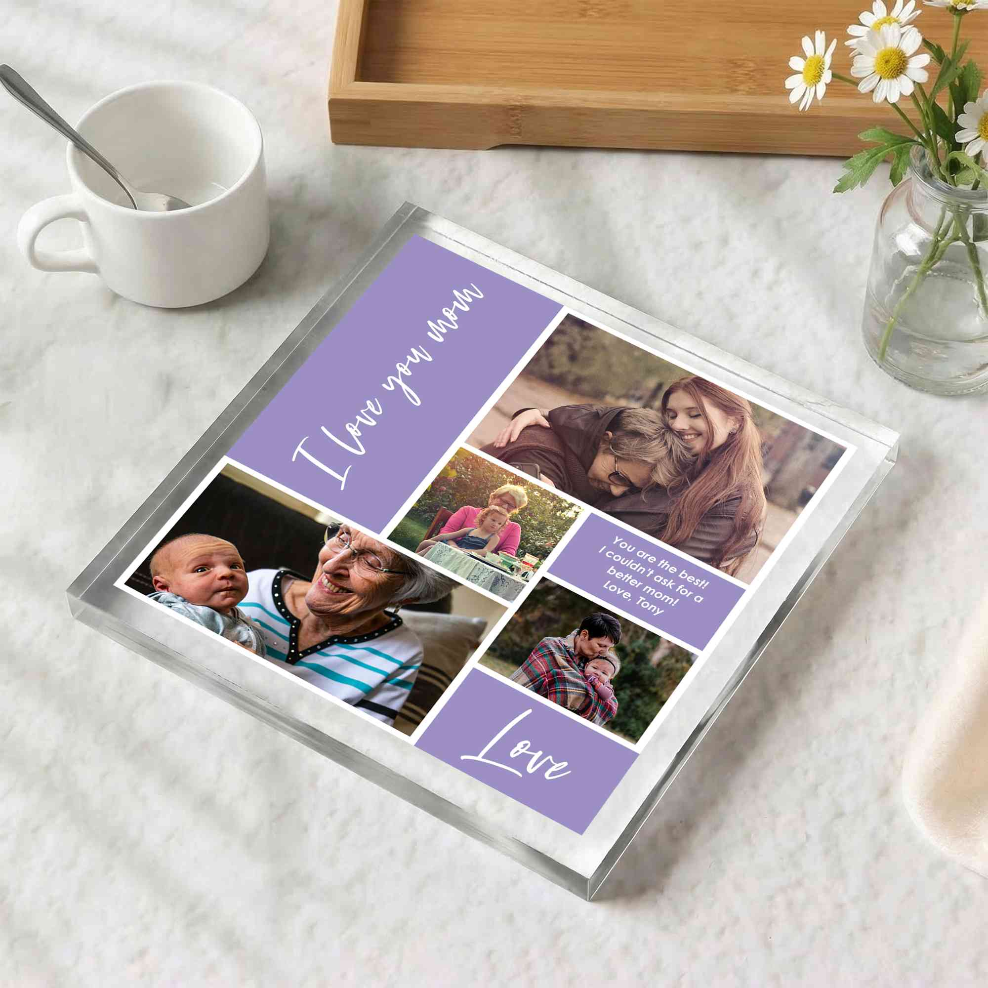 Personalized 4 Photos Colorful Square Acrylic Plaque with Text, Home Decor, Birthday/Anniversary/Mother’s Day Gift for Her/Couple/Mom/Family